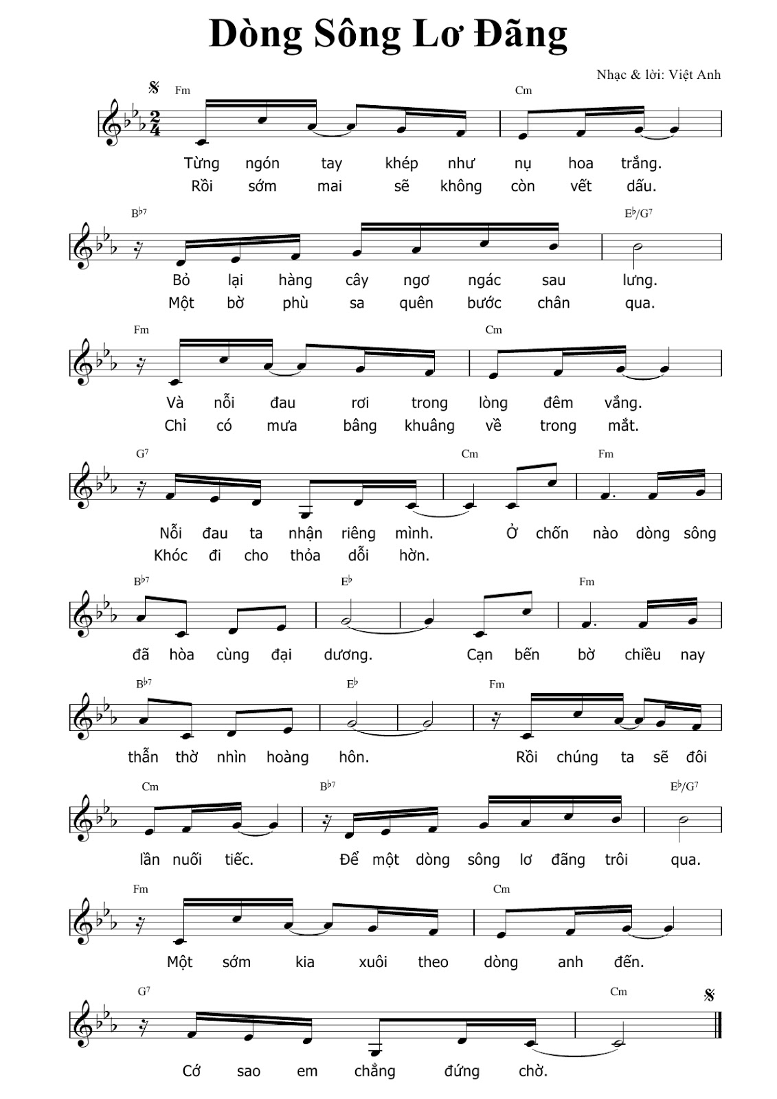 Sheet DÒNG SÔNG LƠ ĐÃNG của nhạc sĩ Việt Anh.(dsld)