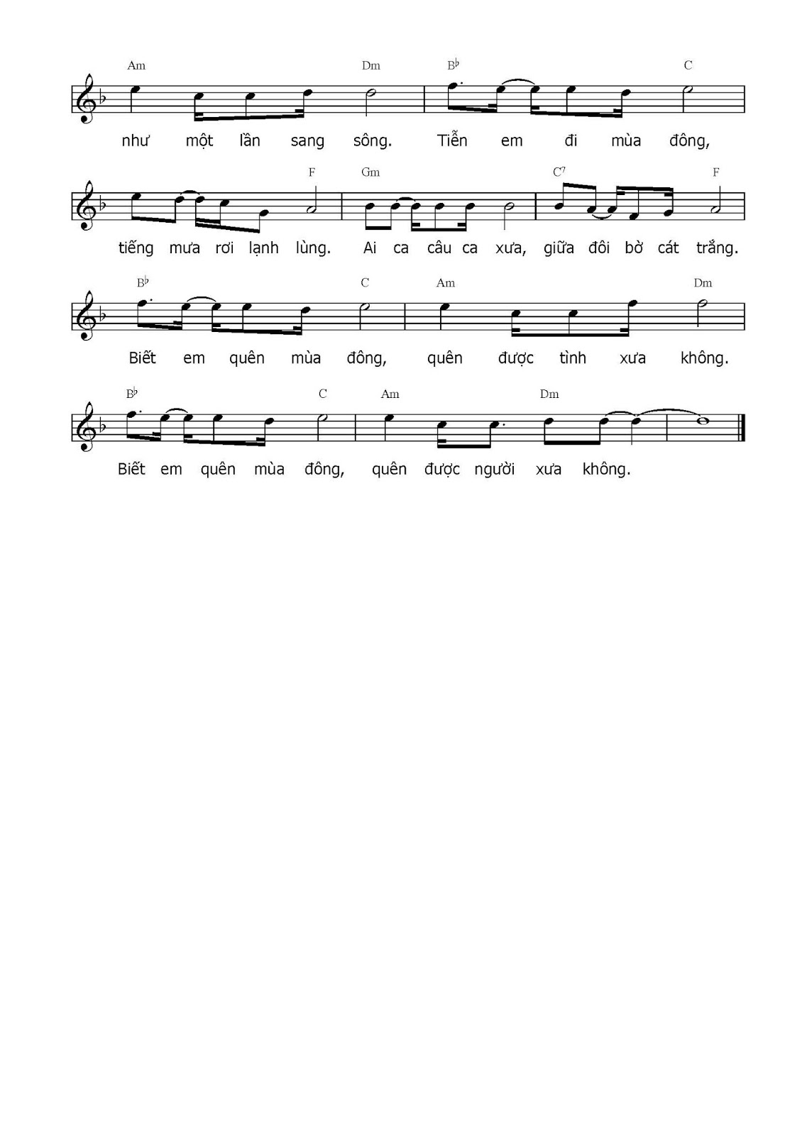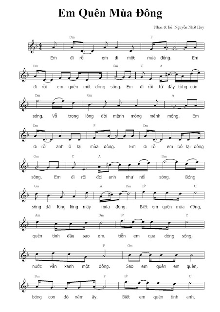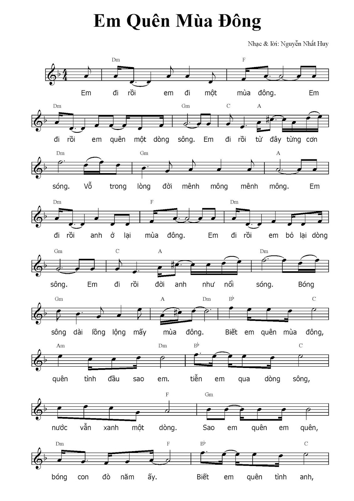 Sheet EM QUÊN MÙA ĐÔNG của nhạc sĩ Nguyễn Nhất Huy.