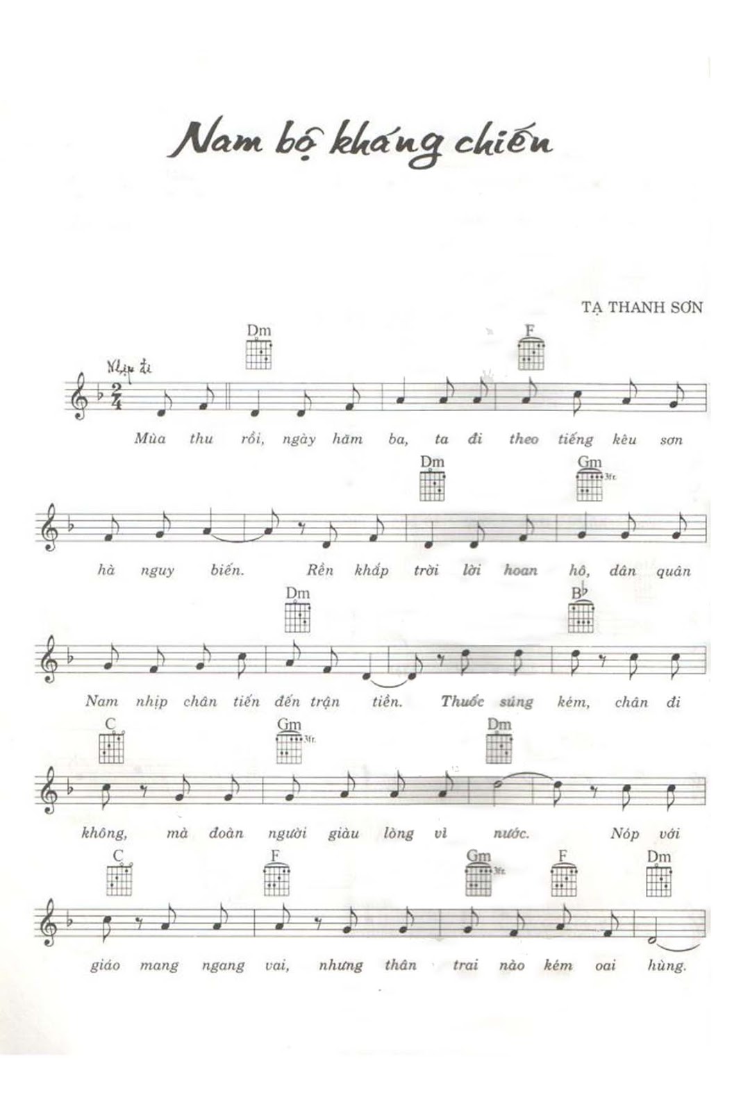 Sheet NAM BỘ KHÁNG CHIẾN của nhạc sĩ Tạ Thanh Sơn.