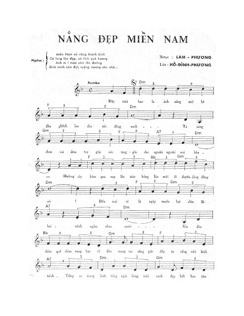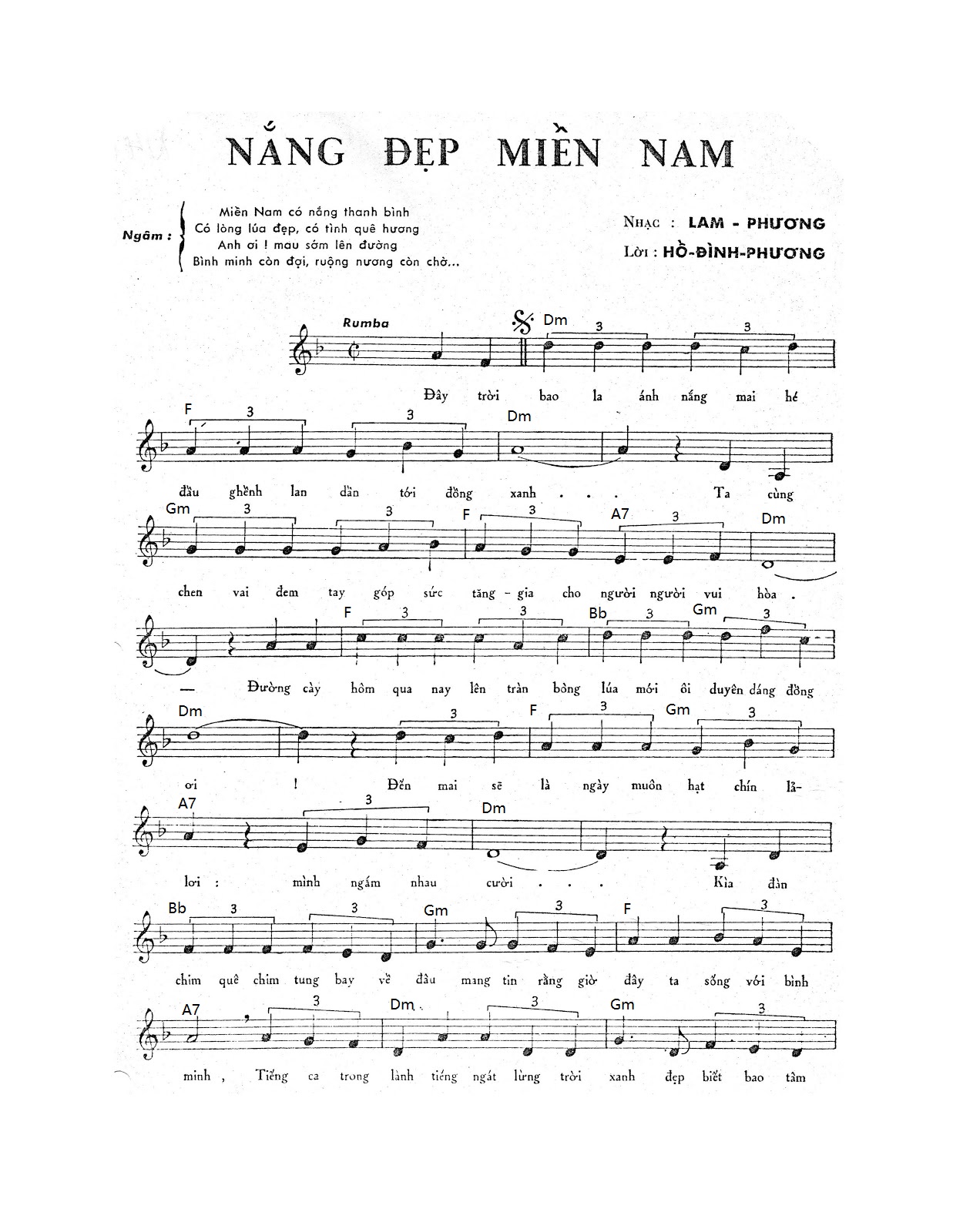 Sheet NẮNG ĐẸP MIỀN NAM của nhạc sĩ Lam Phương.