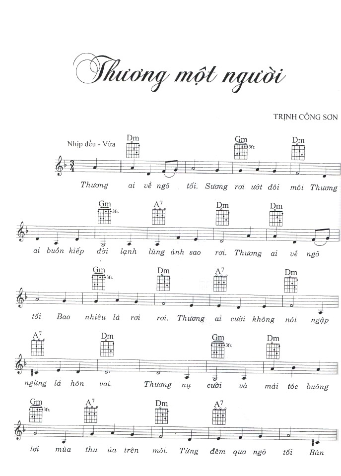 Sheet THƯƠNG MỘT NGƯỜI của nhạc sĩ Trịnh Công Sơn.(tmn)