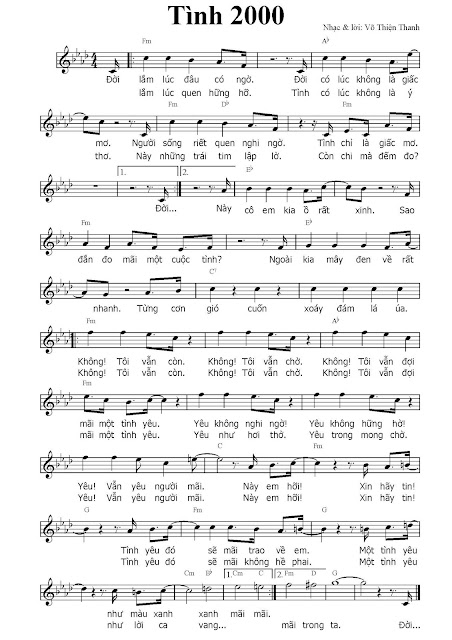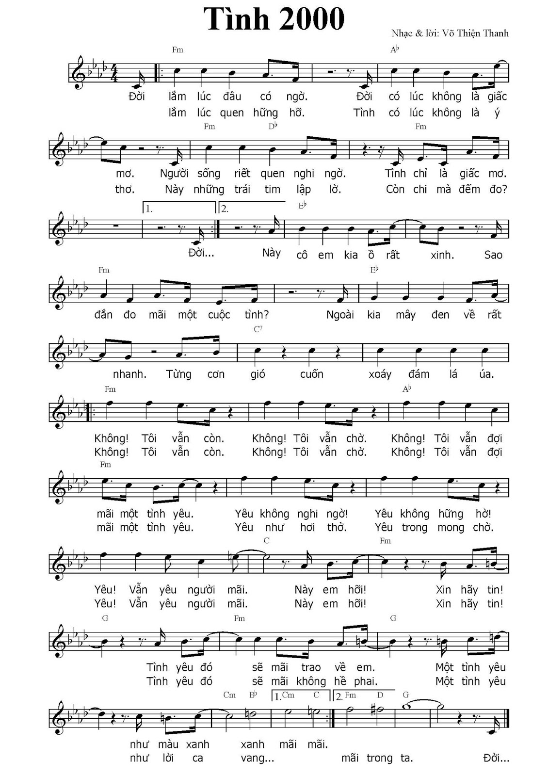 Sheet TÌNH 2000 của nhạc sĩ Võ Thiện Thanh.