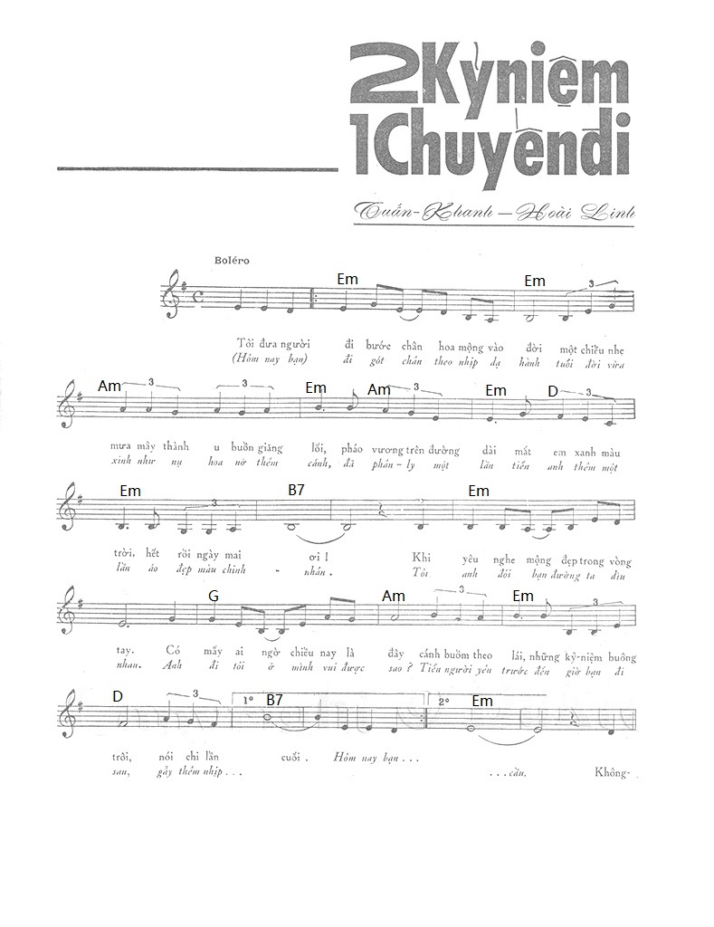 Sheet HAI KỶ NIỆM MỘT CHUYẾN ĐI của nhạc sĩ Tuấn Khanh, Hoài Linh.(hknmcd)