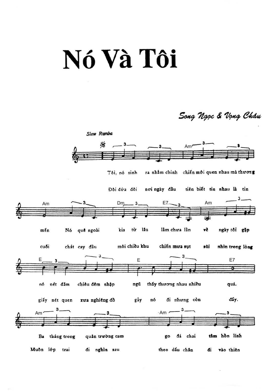 Sheet NÓ VÀ TÔI của nhạc sĩ Song Ngọc, Vọng Châu.(nvt)