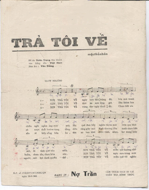 Sheet nhạc bài Xin trả tôi về